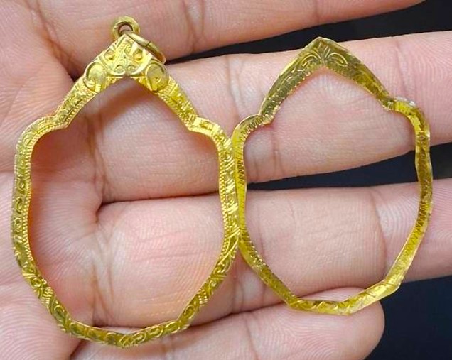 กรอบทองมือสอง ใส่เหรียญมังกรหลวงปู่หมุน หลวงพ่อเอีย หรืออื่นๆที่ไกล้เคียง หน้าจอกว้าง 2.70 ซม., สูง 3.60 ซม. น้ำหนัก 2.31 กรัม เคาะเดียว