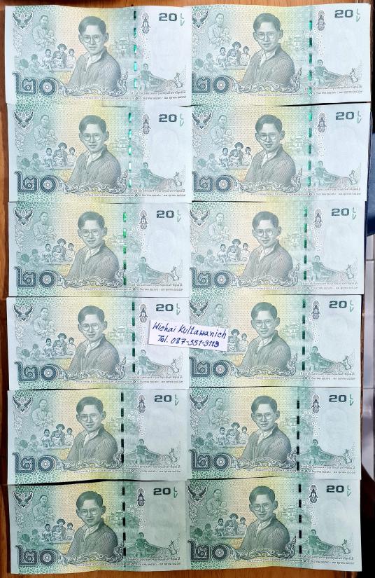 ธนบัตร ร 9 ชนิดราคา 20 บาท แบบ 16.5 ผ่านใช้ สภาพสวยๆ เลข 9หน้า-9หลัง ทุกใบ จำนวน 12 ใบ |