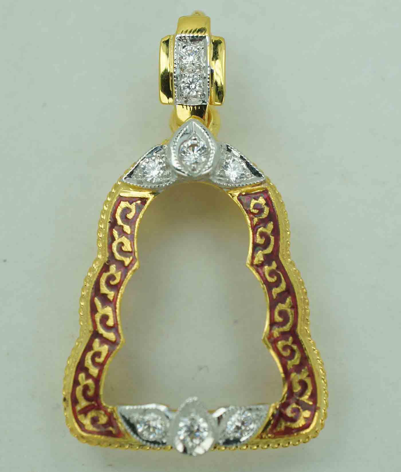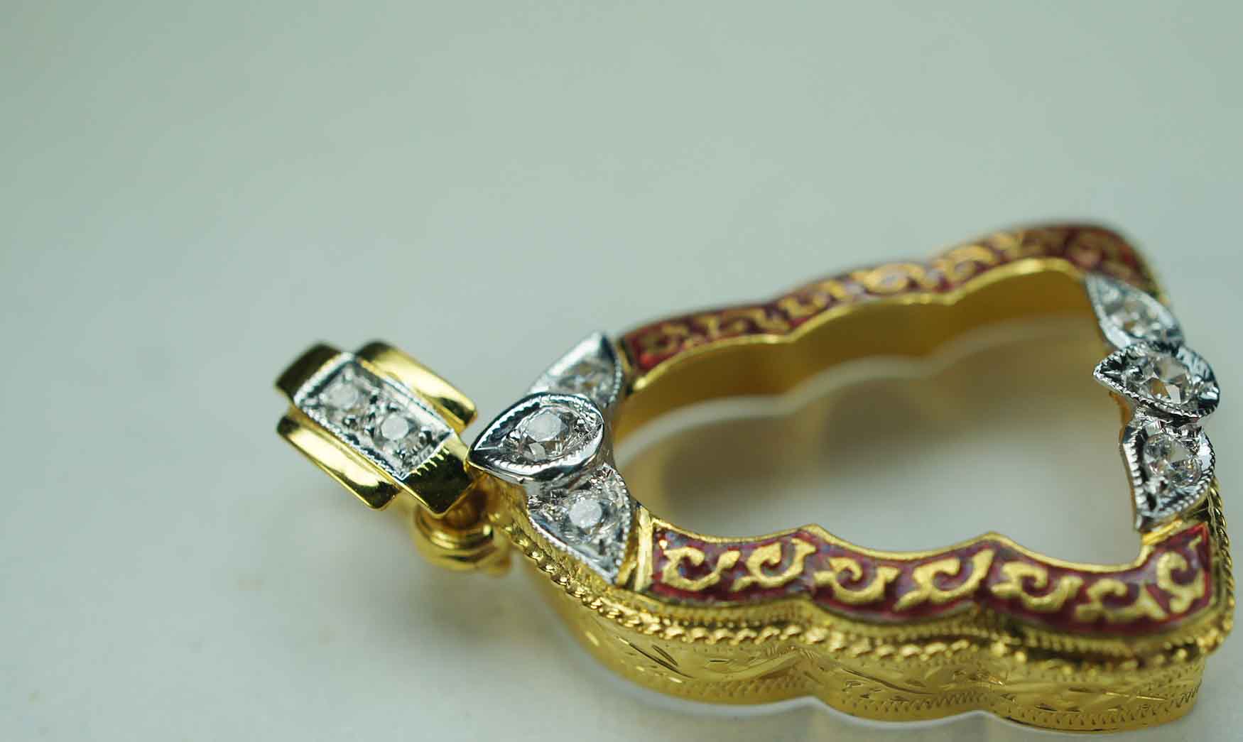 กรอบทองคำ ใส่พระปิดตาข้าวตอกแตก หลวงปู่ทิม ลงยาสีแดง ห่วงเพชร ฝังเพชร CZ 8 เม็ด ข้างเกลียวโปเต้ งานขึ้นมือ น้ำหนัก 2.65 กรัม เปอร์เซ็นต์ทอง 65-70 เปอร์เซ็นต์ รับประกันตามกฏการันตีพระทุกข้อกำหนด ยินดีจ |