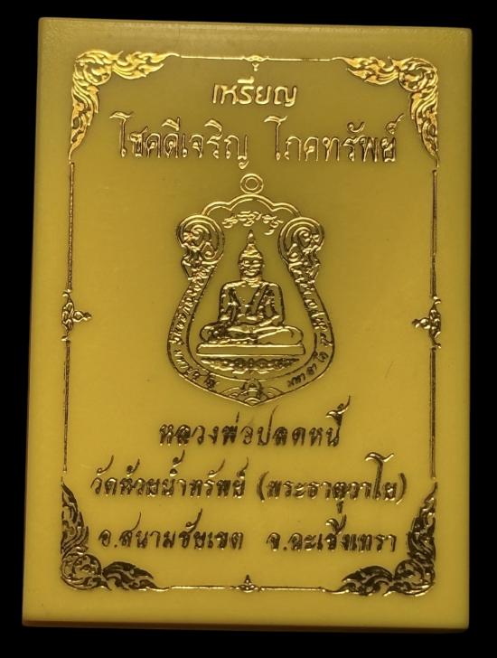 เหรียญหลวงพ่อปลดหนี้รุ่นโชคดีเจริญโภคทรัพย์ เนื้อทองแดงผิวไฟหน้ากากเงิน สร้าง 900 องค์ |