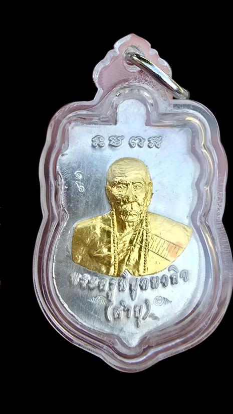 เหรียญกันภัย รุ่นเงินมา เนื้อเงินหน้ากากทองคำ เลข160 หลวงปู่คำบุ คุตตจิตโต