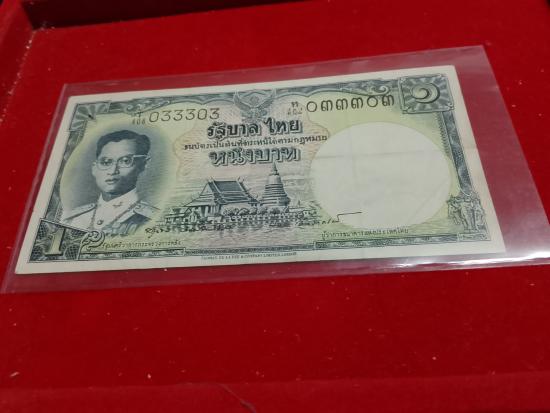 ธนบัตร 1 บาท โทมัส แบบ9 เลขสวย 033303 ใส่ซองถ่ายรูปครับ |