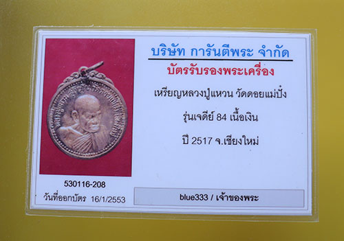 รายละเอียด เหรียญรุ่นเจดีย์ 84 หลวงปู่แหวน วัดดอยแม่ปั๋ง ปี 2517 เนื้อเงิน ผิวขึ้นรุ้ง สวยมาก จมูกสวย ห่วงเดิม กล่องเดิม เลี่ยมรักษาผิว