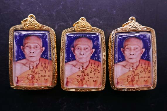 !!!!วัดใจ 9 บาท!!!! 3องค์ รูปถ่ายสี 2หน้า หลวงปู่หลิว วัดไร่แตงทอง จ.นครปฐม ขนาด 1.5 * 1 นิ้ว ด้านหลังปั๊มตรายางวัด พร้อมเลี่ยมกรอบไมครอนทอง