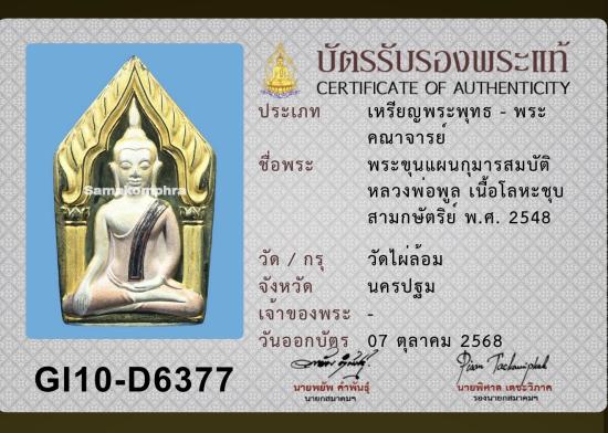 ขุนแผนหลังกุมารสมบัติ หลวงพ่อพูล วัดไผ่ล้อม เนื้อ 3K ปี 2548 พร้อมบัตรรับรองสมาคม