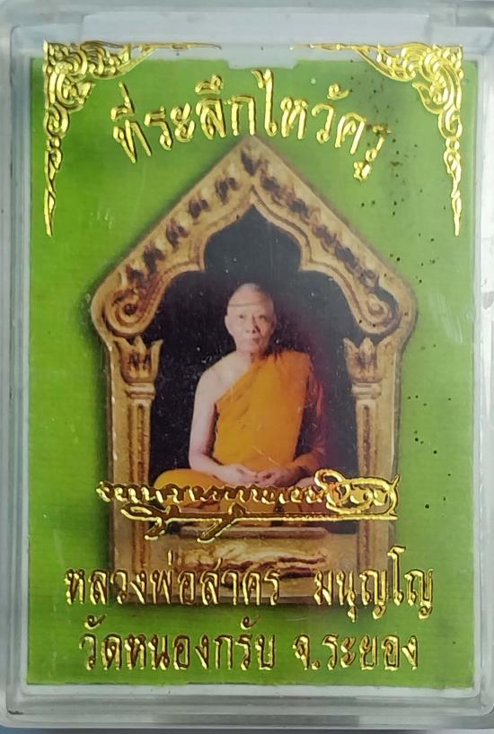 .พระผงรูปเหมือน ที่ระลึกไหว้ครู หลวฃพ่อสาคร วัดหนองกรับ ฝังตระกรุดเงิน กดโค๊ตหน้า-หลัง รวม 3 โค๊ต เบาๆ พร้อมกล่องเดิม |