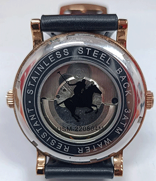 นาฬิกา US MASTER POLO CLUB รุ่น USM220804M มือสองของแท้สภาพสวย สองระบบในเรือนเดียว ออโตเมติก+แบตเตอรี่ ด้านหน้าโชว์ลาน ด้านหลังเปลือย สวยครับ มีสองเวลา |