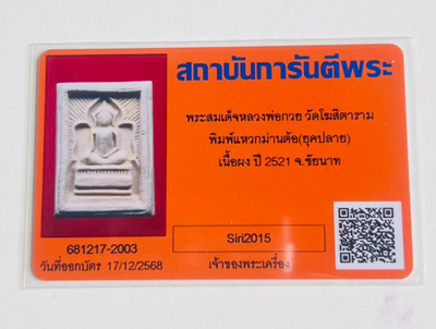 พระสมเด็จแหวกม่านหลวงพ่อกวย ปี 2521 เนื้อผง พิมพ์ต้อ วัดโฆสิตาราม จ.ชัยนาท ออกบัตรแล้วเรียบร้อย(1)