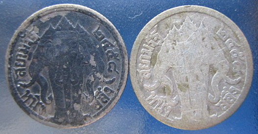 #@ เหรียญกษาปณ์เนื้อเงินหนึ่งสลึง ร.6 ช้างสามเศียร พ.ศ.2458 จำนวน 2 เหรียญ ผ่านการใช้มา เป็นเนื้อเงินแท้....ใช้หมุนเวียน ในรัชกาลที่ 6 อายุ 111 ปี เหรียญผ่านการใช้ สวยมากๆนั้น หายากแล้ว น่าเก็บมาก