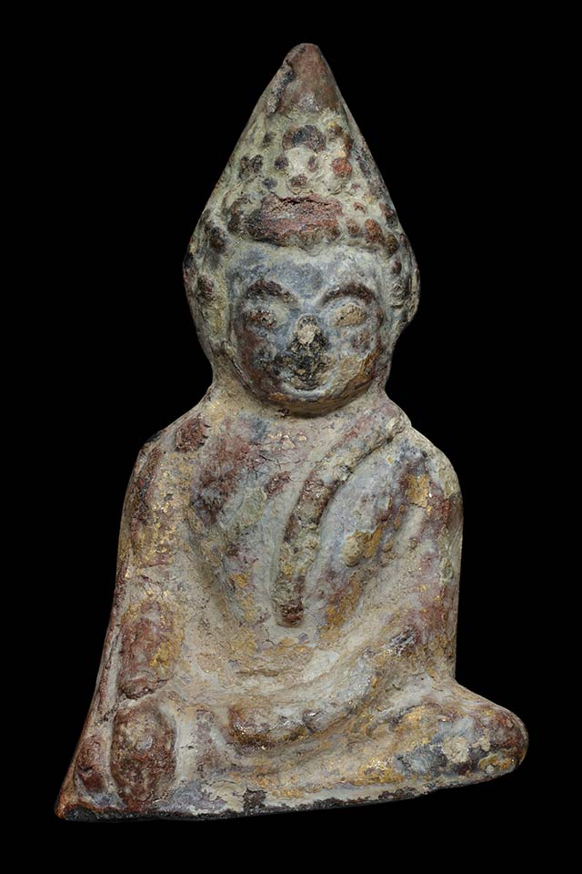 พระแก้บนเนื้อตะกั่วสนิมแดง ก้นกวง ขนาดห้อยคอ |