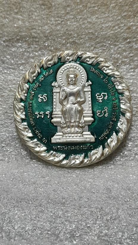 วัดใจเคาะเดียว...........เหรียญ พระนั่งเมืองแก้ว"รุ่นแรก"เนื้อทองเหลืองขัดเงินลงยาสีเขียว หลังรัตนะ 7 จักรพรรดิ วัดหลวงพ่อสดธรรมกายาราม ดำเนินสะดวก ราชบุรี สร้างน้อย หายาก สวยๆ |