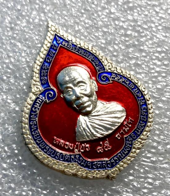 เหรียญหยดน้ำ เนื้อเงินลงยาสีแดง หมายเลข ๒๒๒ (ตองสอง) พร้อมกล่อง พระสวย เลขสวยครับ