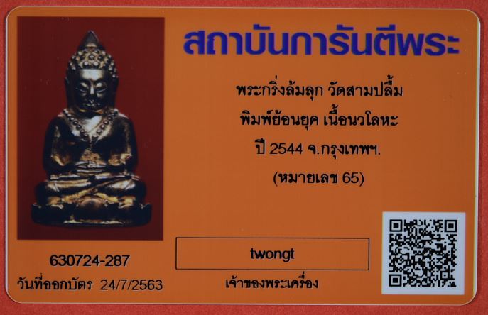 พระสภาพสวยมาก พระเบอร์ 65 เป็นพระเบอร์ต้นๆ พระสร้าง 30 ตุลาคม 2544 เนื้อนวะแก่ทองคำเวลากลับดำสนิทเหมือนพระหลวงพ่อเงินชุดพระพิจิตร ตอก 3 โค๊ตและเลขหมายประจำองค์ โดยกรมยุทธศึกษาทหารบก ครบรอบ 109 ปี ฝีมือแพรนด้าจิวเวลรี่ พิธีมหาพุทธาภิเษกใหญ่ที่วัดสามปลื้มครับ ขนาดพระ กว้าง 1.7 ซ.ม. สูง 3.1 ซ.ม. หนา 1.4 ซ.ม. ค่าออกบัตร 250 บาท เหลือค่าพระ 950 บาท ดูรายละเอียดได้ใน google มีประวัติชัดเจน ครับ รับประกันตามกฏของเวป โอนเงินแล้วกรุณาแจ้งทางกล่องข้อความด้วยน่ะครับ โปรดแจ้งที่จัดส่งใหม่หากมีการเปลี่ยนแปลง ขอบคุณครับ |