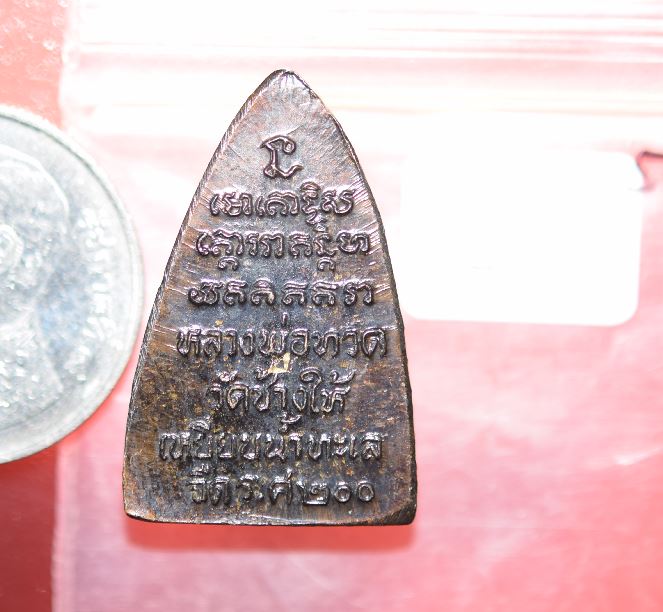 พระกลีบบัวหลวงปู่ทวด วัดช้างให้ ร.ศ.200 ปี 2525 พิมพ์หน้าหนุ่ม เนื้อทองเหลืองรมดำ เคาะเดียวแดง องค์ที่ 1 |