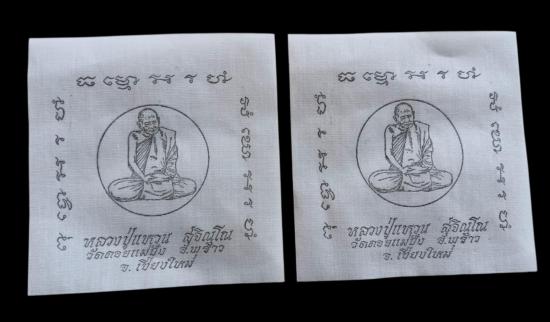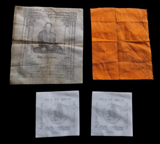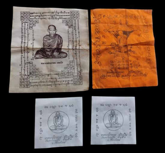 พร้อมกันทีเดียว 4 ผืนครับ ผ้ายันต์หลวงพ่อเกษม 1 ผืน + ผ้ายันต์หลวงปู่แหวน 3 ผืนครับ