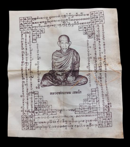 ชื่อพระเครื่อง พร้อมกันทีเดียว 4 ผืนครับ ผ้ายันต์หลวงพ่อเกษม 1 ผืน + ผ้ายันต์หลวงปู่แหวน 3 ผืนครับ