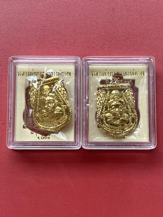 เคาะเดียวแดง หลวงปู่ทวด อาจารย์ทอง รุ่นแซยิด93 พิมพ์ใหญ่ 2องค์ เนื้ออัลปาก้าผิวเปียกทอง |