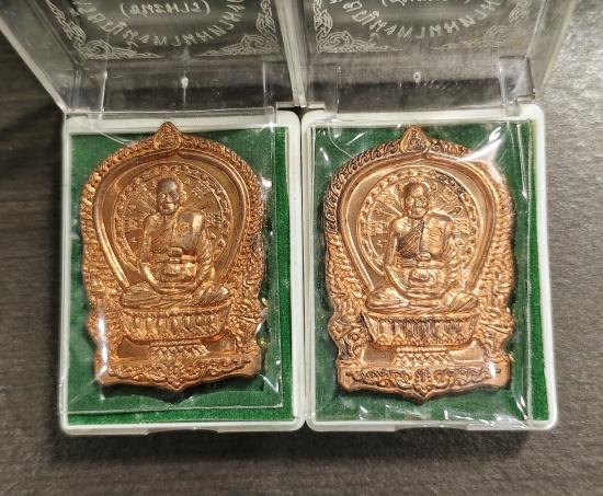 เหรียญนั่งพานมหามงคล (ชนะมาร) เนื้อทองระฆัง ทองแดง (5 เหรียญ) หลวงพ่อจรัญ วัดอัมพวัน ปี 2558 |