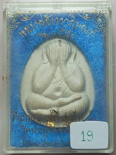 19,เคาะเดียวแดงสบายใจครับ พระปิดตาวัดประดู่ฉิมพลี รุ่น 108 ปี พิมพ์จัมโบ้หลังยันต์ดวง ฝังตะกรุดทอง 2 ดอก ปี 2538 พร้อมกล่องเดิมน่าเก็บบูชาครับ