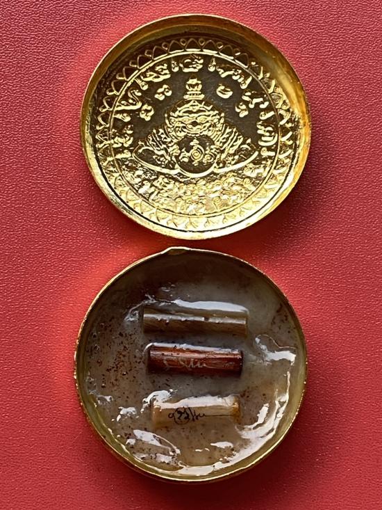 เคาะเดียวแดง สีผึ้งพระราหู รุ่น มงคลจักรวาล เนื้อ โลหะชุบทองลงยาสีดำขอบสีดำ ขนาด5ซม |
