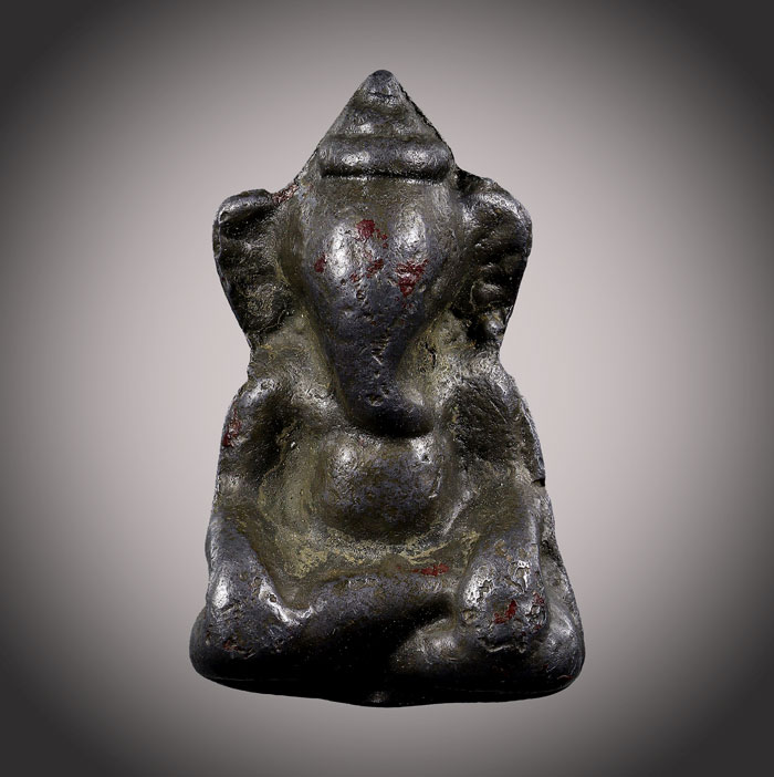 (วัดใจ)พระพิฆเนศ(ไม่ทราบที่)หลังยันต์ เนื้อตะกั่ว เก่าพอมีอายุ |