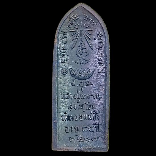 วัดสัมพันธวงศ์ กรุงเทพมหานคร จัดสร้าง คราวทำบุญอายุหลวงปู่ ๘๔ ปี เข้าพิธีในวันงานฉลองอายุเมื่อ ๑๑ มี.ค.๒๕๑๗ เป็นรูปใบข้าว หลวงปู่ห่มคลุมหน้าตรงยืนเต็มองค์ มีลายเม็ดไข่ปลาเป็นซุ้ม ไม่มีห่วง ด้านหลังรูปเฆาะขัดสมาธิ มีรัศมี บัวรองรับ พระคาถา พุทโธ อรหํ ธมฺโม อรหํ สงฺโฆ อรหํฯ อ.อุ.ม. ข้อความ "หลวงปู่แหวน สุจิณฺโน วัดดอยแม่ปั๋ง อายุ ๘๔ ปี ๒๕๑๗" มีโค้ดตอก เหรียญทองแดงรมดำและไม่ได้รม 50,000 เหรียญ, นวโลหะ 108 เหรียญ, เงิน 85 เหรียญ, ทองคำ 17 เหรียญ และที่สำคัญความน่าสนใจของเหรียญนี้มีดังนี้ครับ