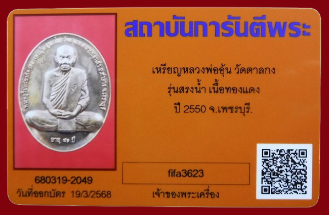 แดงที่เคาะแรก !!! เหรียญรุ่นสรงน้ำ พิมพ์ใหญ่ หลวงพ่ออุ้น วัดตาลกง ปี2550 + บัตรพระแท้