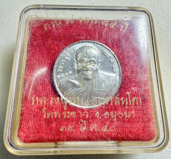 เหรียญโภคทรัพย์ 7 รอบ ปี2540 หลวงปู่ทิม วัดพระขาว เนื้อดีบุก สภาพสวยพร้อมกล่องเดิมค่ะ