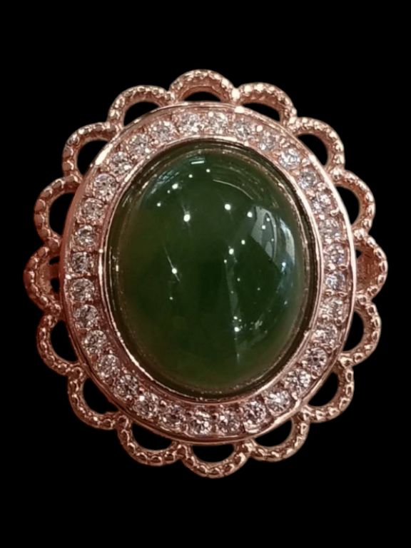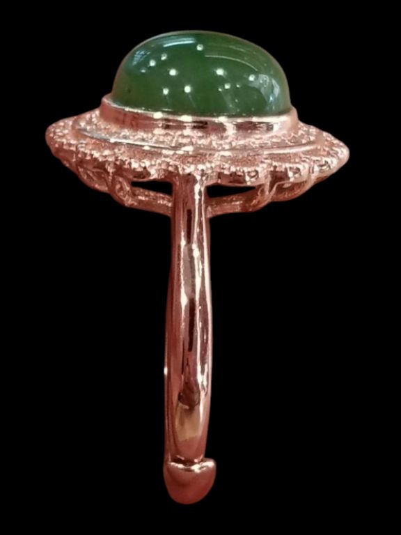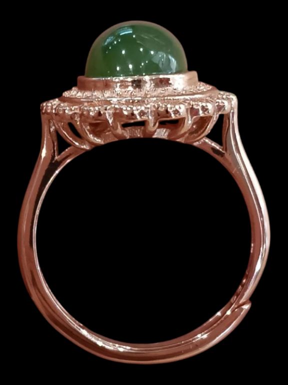 หัวแหวนหยก ( หยกก้อนแรก ) ตัวเรือนเนื้อเงินแท้ 925 ชุบ pink gold