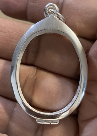 ตลับเงินปัดเงา ทรงรูปไข่ ขนาดขอบใน (กxสxหนา) (2.7 x 3.6 x0.6) Cm.หรือขนาดเหรียญใกล้เคียง