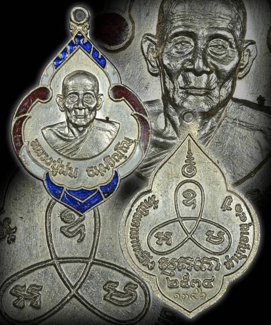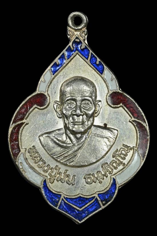 เหรียญพุ่มข้าวบิณฑ์(หน้าวัว)เงินลงยาสีธงชาติ หลวงปู่ม่น วัดเนินตามาก ปี2534 จ.ชลบุรี