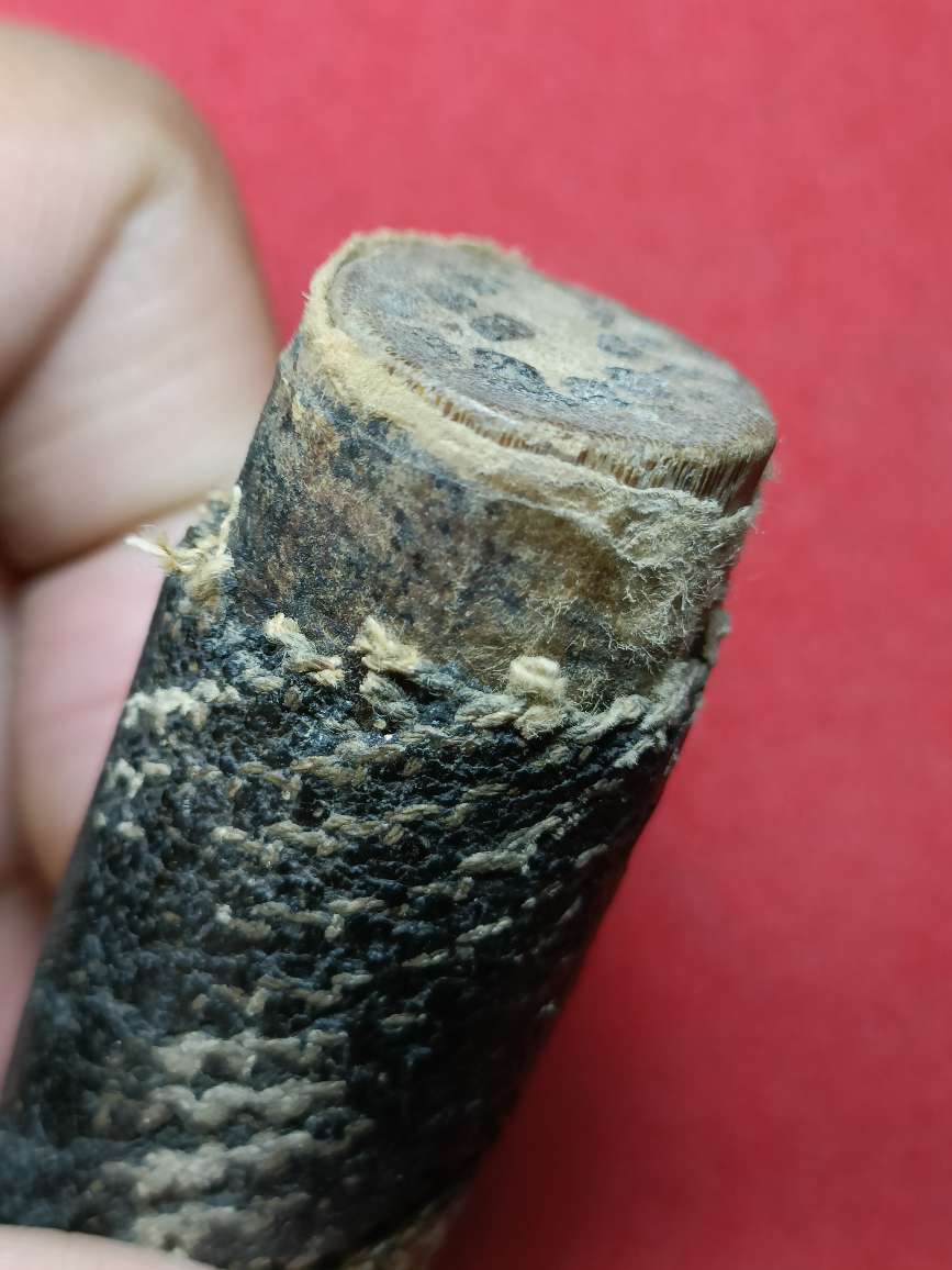 ล้มมวยตะกรุดแกนไม้พันกระดาษสาลงขระถักเชือกผอกผงคลุกรักเก่ายาว4นิ้ว |