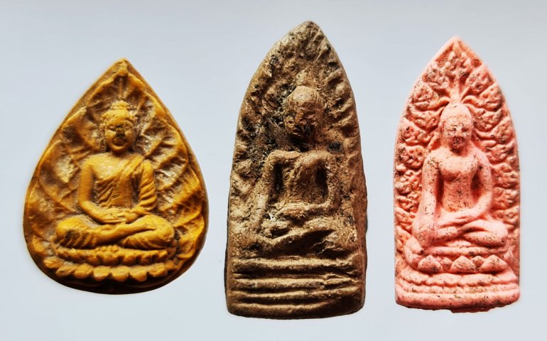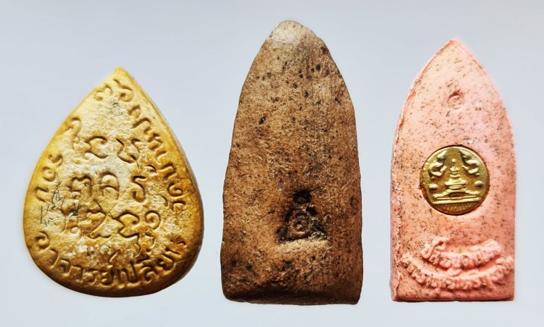 << วัดใจ >> พระผงใบโพธิ์ รุ่นแรก พระอาจารย์เปลี่ยน + พระรอดหลัง อ ครูบาอินทร + พระรอดหลวงหริภุญชัย รุ่นปลียอดฉัตรพระธาตุเจ้าหริภุญชัย