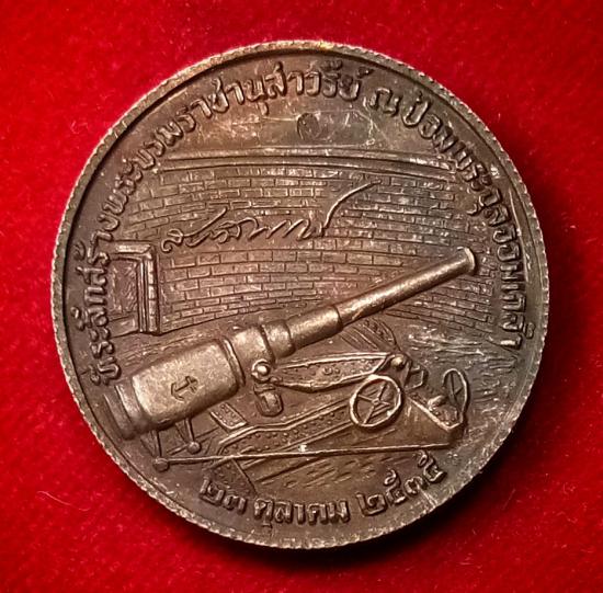 เหรียญ รัชกาลที่ 5 ที่ระลึกสร้างพระบรมราชานุสาวรีย์ ณ.ป้อมพระจุลจอมเกล้า ปี 35...ขอบสตางค์...ตอกโค้ด