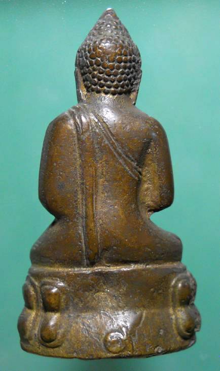 เนื้อพระแห้ง เก่าตามธรรมชาติ ก้นฐานตะไบมือตามสไตล์ช่างรุ่นเก่า และที่ก้นฐานอีกนั่นแหละครับบอกชัดเจนว่า ใช้เนื้อทองเหลืองยุคเก่าสร้าง กระแสอมเขียว