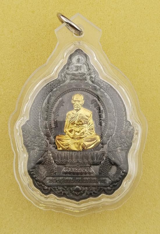 (เคาะเดียว เลขตอง 444) เหรียญเสมาหลวงปู่ทองสุข รุ่นทองสุขแสนล้าน ปี62 เนื้อทองแดงรมดำองค์ทองฝาบาตร เลี่ยมกันน้ำ (ไม่มีกล่อง)