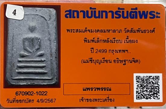 พระมงคลมหาลาภพระสมเด็จพิมพ์เล็กเนื้อผงพรหมโสฬรปี2499.คุณแม่บุญเรือน#4 |