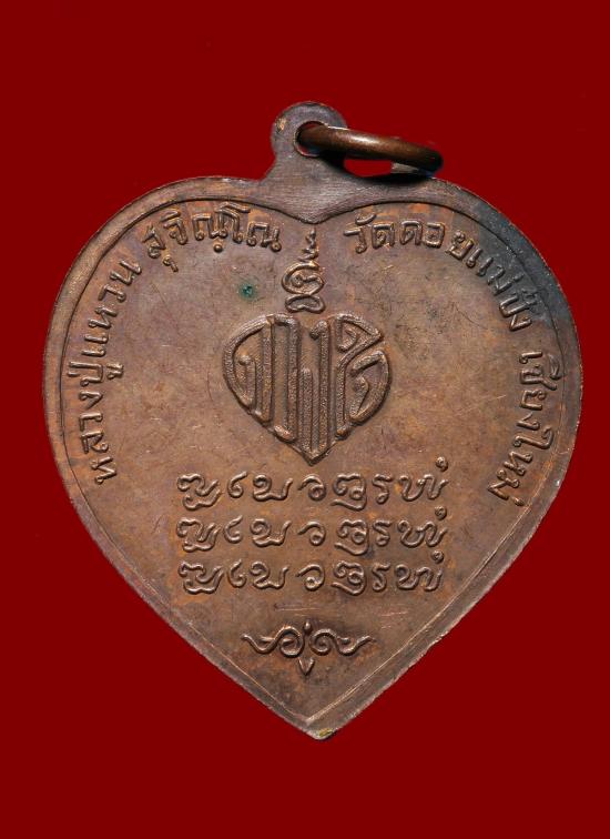หลวงปู่แหวน วัดดอยแม่ปั๋ง เหรียญหัวใจ เนื้อทองแดง ตอกโค๊ด