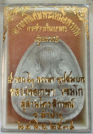 พระเนื้อผงพระปิดตา "มหาลาภเขมโก" 5รอบ60พรรษาอุปสมบทหลวงพ่อเกษม เขมโก ปี2536 สุสานไตรลักษณ์ อ.เมือง จ.ลำปาง สร้างพร้อมกับพระสมเด็จพิมพ์พระประธานหลังโรยทับทิมและตะกรุดเงินรุ่นแรก เมื่อ24มิถุนายน2536 ถือเป็นพระปิดตายุคต้นๆหายากมากครับ |