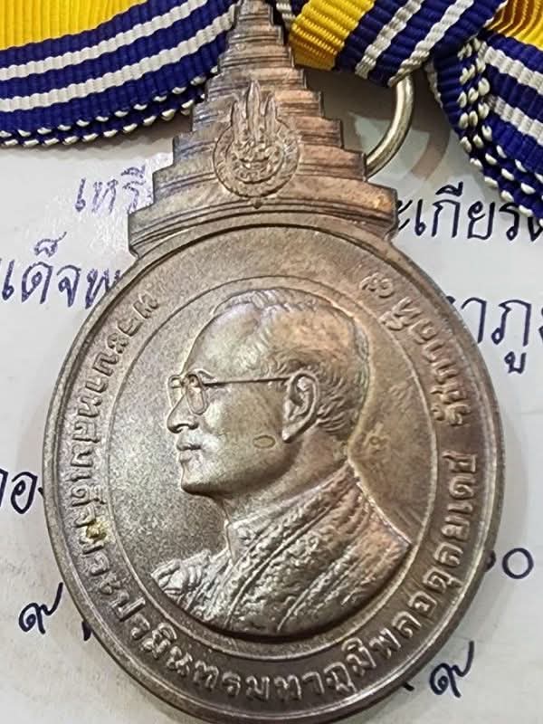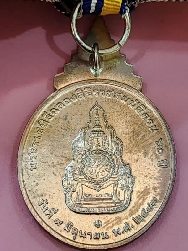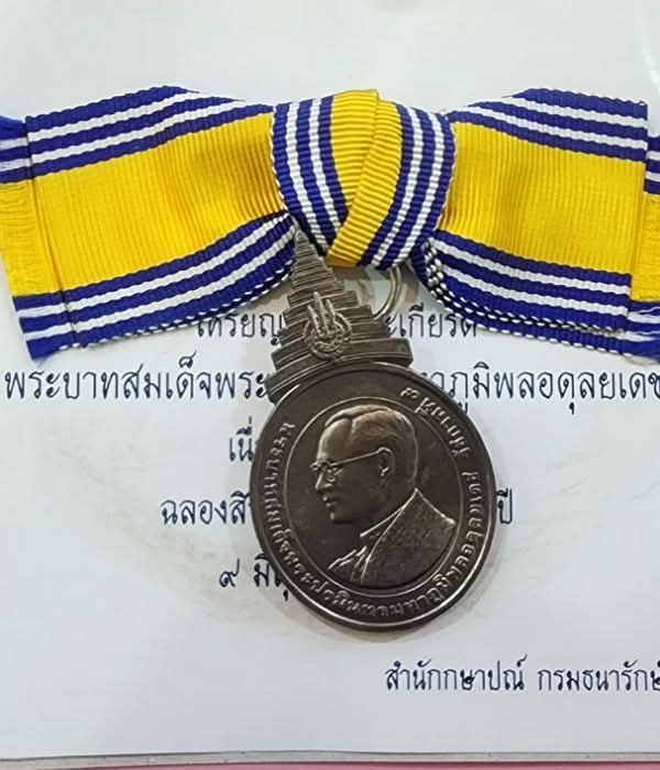 เหรียญแพรแถบ เนื้อเงินรัชกาลที่ 9 ทรงครองราชย์ครบ 60 ปี