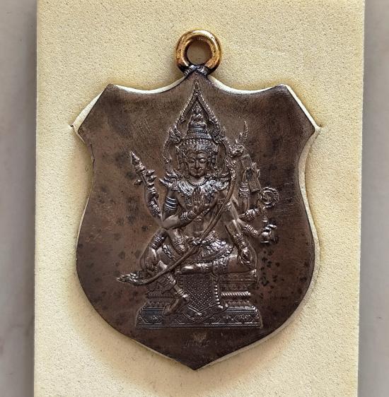 เหรียญห่วงเชื่อมโบราณท้าวมหาพรหม รุ่นเจ้าสัวพันล้าน(บอย ท่าพระจันทร์) เนื้อชนวน โค๊ตกรรมการ No.๑๒๘ พร้อมกล่องเดิม (สร้าง 699 เหรียญ) |