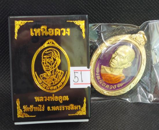 เหรียญเหนือดวงหลวง พ่อคูณ วัดบ้านไร่ เลี่ยมกรอบชุบทอง ใหม่ไม่ผ่านการใช้งาน no.51