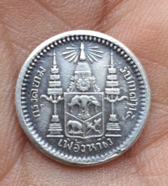 เหรียญกษาปณ์ หลังตราแผ่นดิน (เฟื้องหนึ่ง) พระบาทสมเด็จพระจุลจอมเกล้าเจ้าอยู่หัว (รัชกาลที่ 5) กรุงสยาม ราคาเหรียญ เฟื้องหนึ่ง ((เหรียญสร้างจากเนื้อเงินแท้)) เหรียญใช้หมุนเวียน |