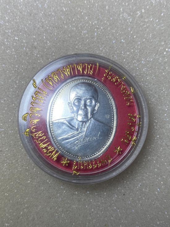 เหรียญหลวงตาจวน วัดไก่เตี้ย รุ่นสร้างเขื่อน (เนื้อเงิน 94.05%) จ.สุพรรณบุรี ปี2537 สภาพสวยเดิมพร้อมกล่องครับ