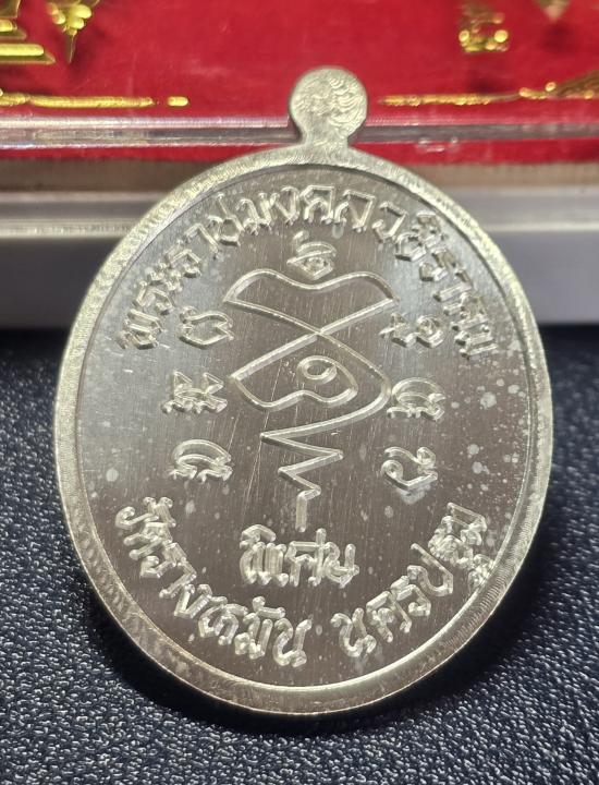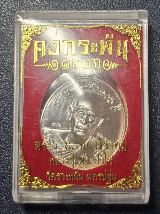 เหรียญคงกระพัน 100 ปี หลวงปู่แผ้ว ปวโร วัดรางหมัน เนื้อเงินสวยๆพร้อมกล่องเดิม