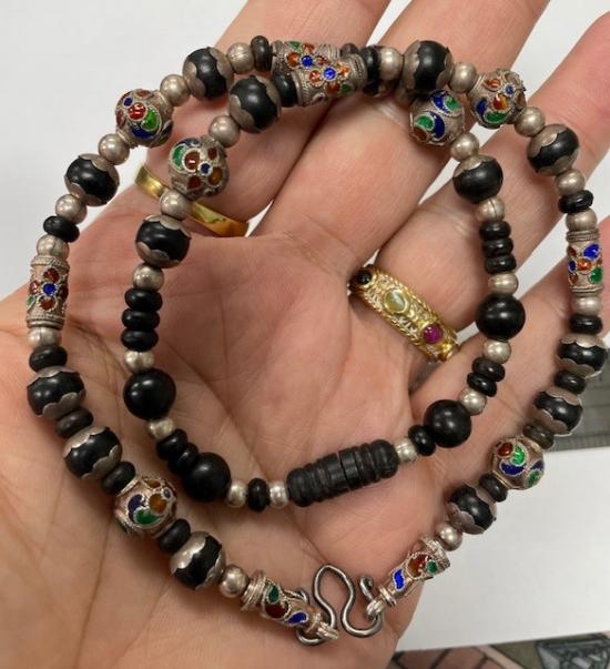 สร้อยไม้พญางิ้วดำแต่งเงินลงยา แถมเม็ดเงินเม็ดพญางิ้วดำเอาแต่งเพิ่ม |