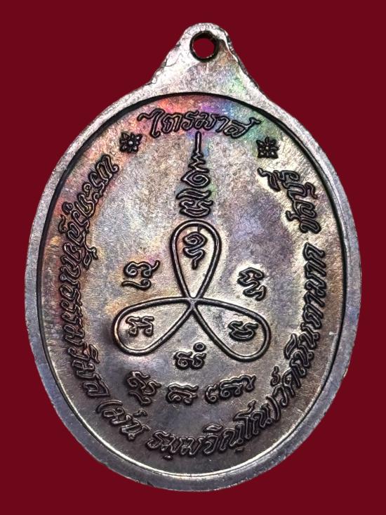 -วัดใจเคาะเดียวแดง- เหรียญไตรมาสเนื้อทองแดงลงยาสีทอง หลวงปู่ม่น วัดเนินตามาก ปี 37