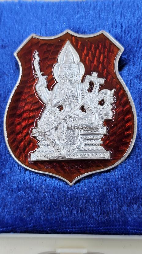 เหรียญพระพรหม รุ่นเศรษฐี พระอาจารย์เบนซ์ วัดราชาฯ กรุงเทพ เนื้อเงินลงยาแดงหนักประมาณ 16 กรัม) หมายเลข ๒๓ พร้อมกล่องเดิม