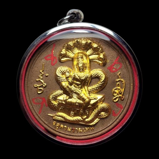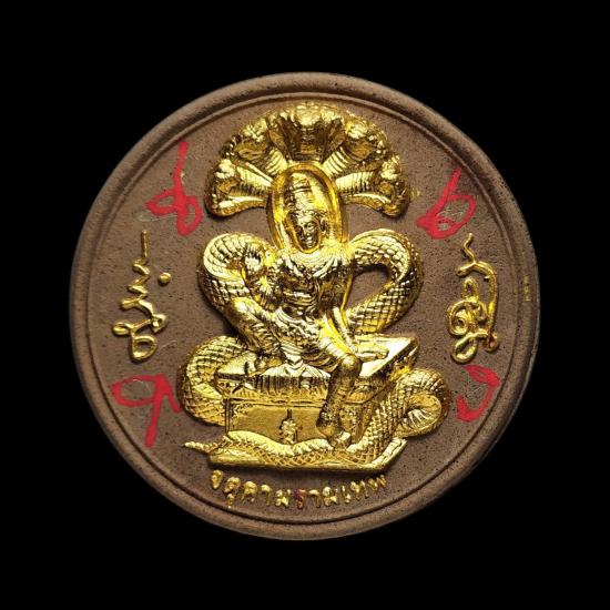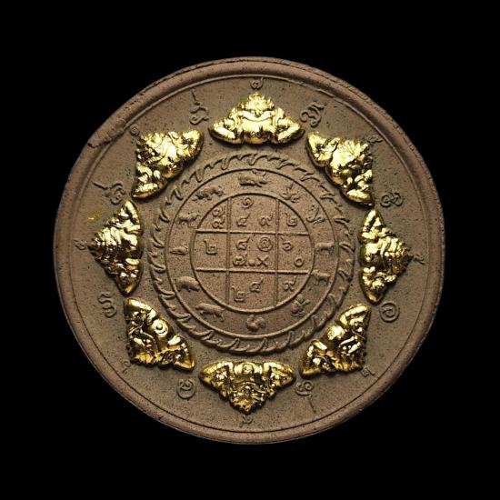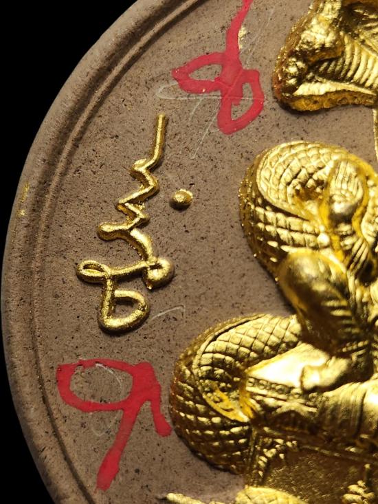 รุ่นมรดกพ่อ วัดพุทไธศวรรย์ ปี2547 เนื้อน้ำตาล ปิดทอง มีจารเหล็ก จารหมึกแดง