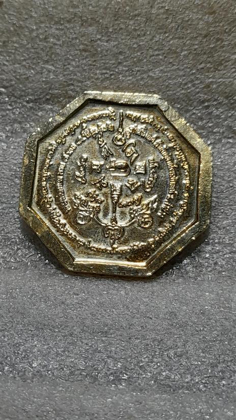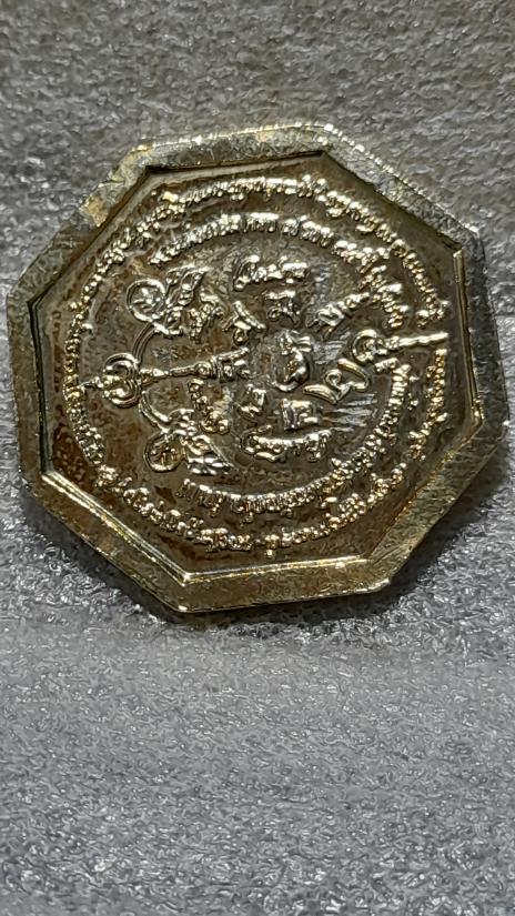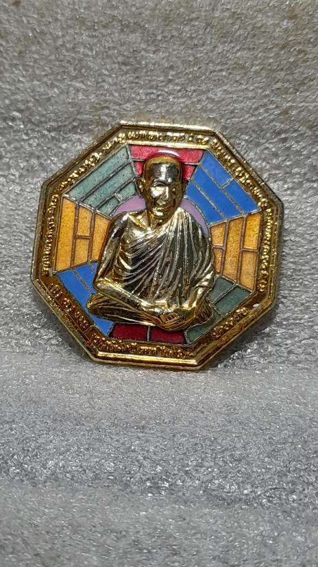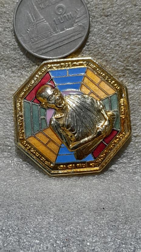 วัดใจเคาะเดียว......100.......เหรียญคุ้มภัยแปดทิศ ทรงแปดเหลี่ยมลงยา(โป้ยกั๊ก) หลวงพ่อเกษม ปี2538 กะไหล่ทองลงยา สวย